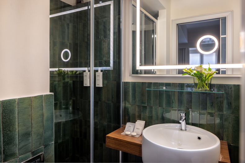 From the altar embedded in the bar counter to the lobby with its cross vaults; from the corridors of the four floors to the modern and sophisticated style of the rooms and suites, defined by their carefully chosen materials. Anyone with a thirst for more elegance and art only has to step outside the door.